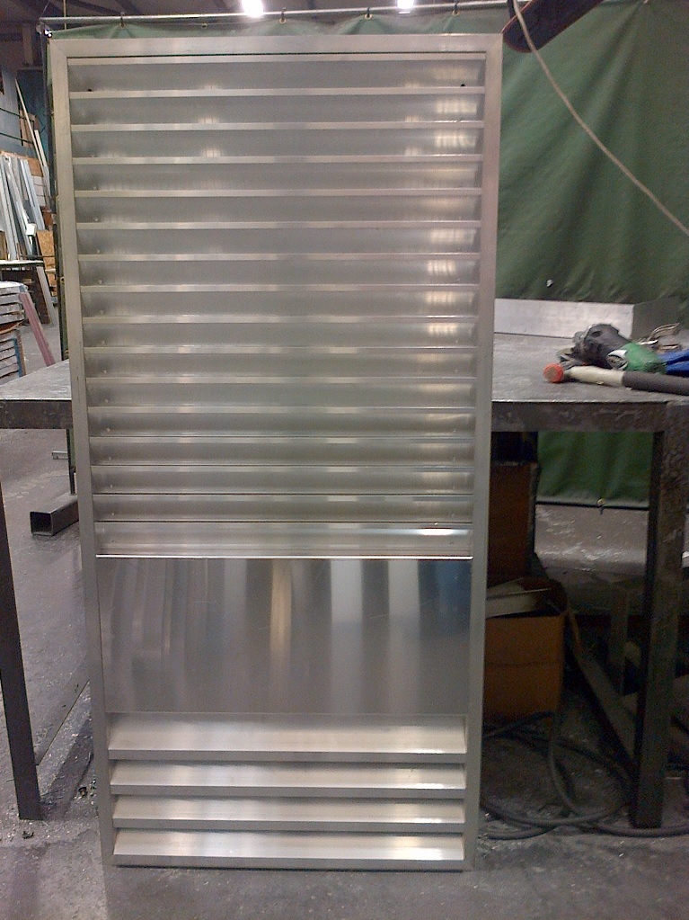 Manufactured from aluminium extrusions to form a fixed blade single panel.